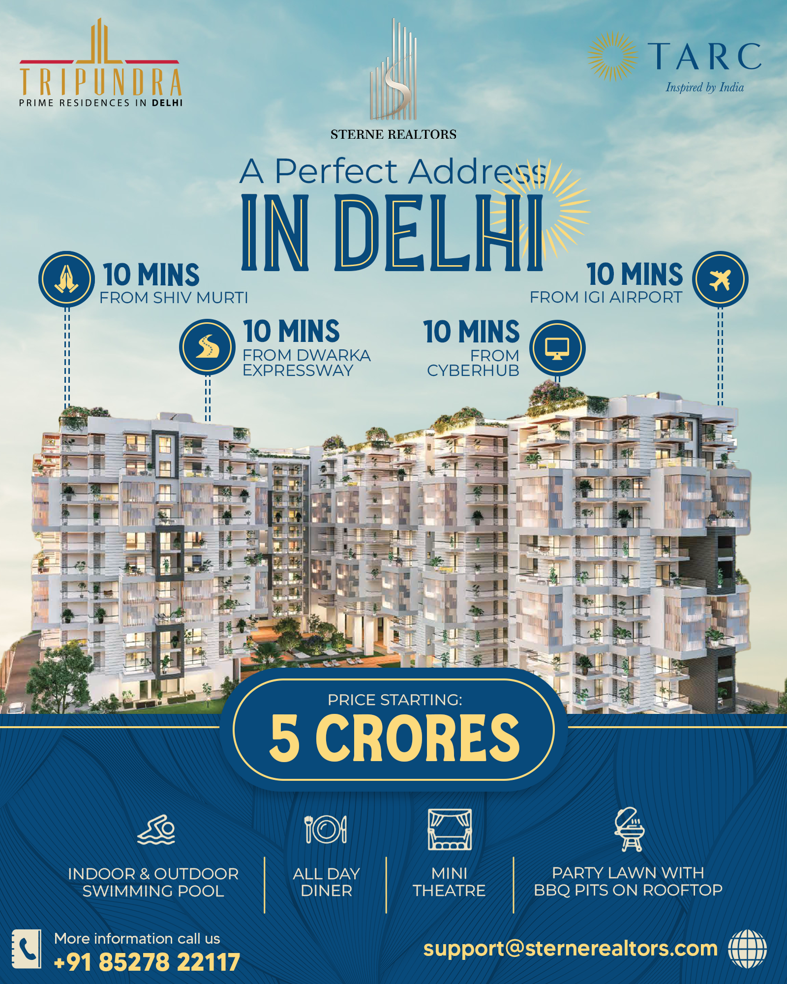 Tripundra is a luxurious residence with international amenities which is just 10mins away from IGI TERMINAL 3.
